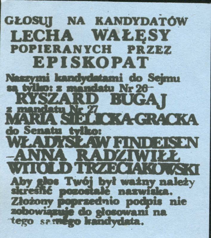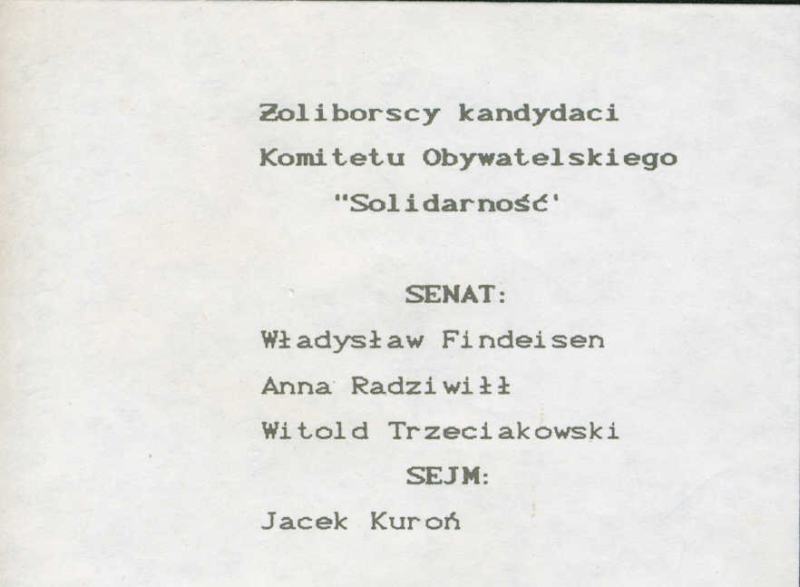 Ulotki wyborcze kandydatów Komitetu Obywatelskiego "Solidarność", 1989, APW, Archiwum Zakładowe Komisji Zakładowej NSZZ "Solidarność"